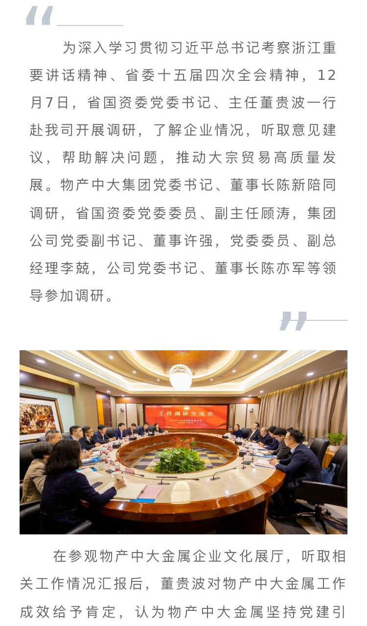 浙江省國資委黨委書記、主任董貴波一行蒞臨我司調研指導